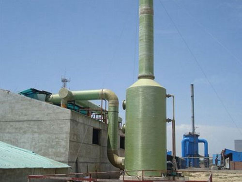 鍋爐除塵器的煙氣運行路徑:煙氣從現有的靜電除塵器和鼓風機通過煙道系統;流過一個軸流增壓風機,進入脫硫塔。煙氣進入脫硫塔后,與包含氨水漿液的逆流噴漿接觸,其中的SO2由氨水漿液吸收。漿液同時使氣體飽和,并將其從入口的135℃溫度冷卻到50℃,緊接著氣體穿過脫硫塔頂部兩個波紋型除霧器,兩層有效的除霧器安裝于脫硫塔的上部,以便去除(煙氣中)附帶的液滴。運行的噴霧塔中的氣體,離開脫硫塔,再次通過鍋爐,以重新加熱氣體,并以80℃的溫度、按設計的操作條件進入現有的煙囪裝置。