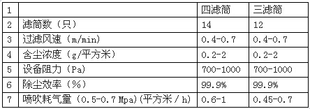 一般為負壓作業,含有粉塵的氣體有進風口進入濾筒除塵器內,在濾芯內負壓的作用下,經過濾芯過濾,進入潔凈室從出風口排出。當粉塵在濾料表面上越積越多,阻力越來越大,當達到設定值時,脈沖閥打開,壓縮空氣直接噴入濾筒中心,對濾筒進行順序脈沖清灰,使其恢復低阻運行。含有粉塵的氣體進入過濾室,比較大的粉塵顆粒直接落到灰斗,含有粉塵的氣體經過濾芯凈化,粉塵會粘附在濾芯的表面,干凈的氣體經過濾芯口到達靜氣室,在有引風機經煙筒排入大氣中。當濾芯便面的粉塵不斷的增加,導致除塵器內的阻力增加,當阻力增加到_的數值時,控制儀會發出信號,進行程序的控制,這時脈沖閥會逐個打開,壓縮空氣通過噴口對濾芯進行噴吹清灰,在壓縮空氣的噴吹下,附在濾芯上的粉塵層快速的脫離濾芯落入灰斗中,在由螺旋輸送機或卸灰閥直接排出。